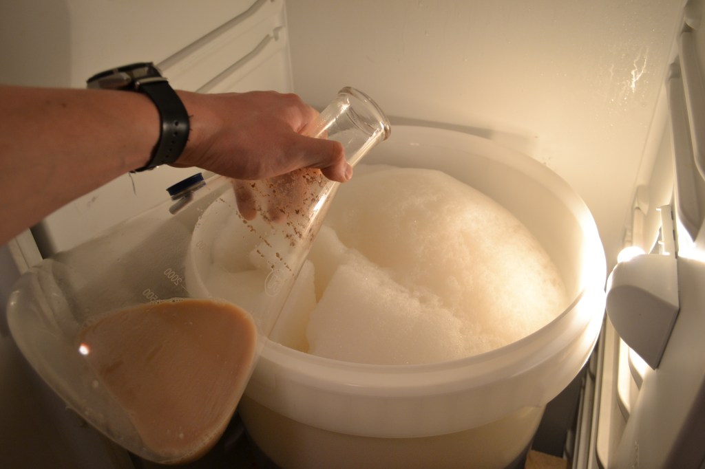 Här går drygt 500 miljarder rehydrerade, förkultiverade och dekanterade jästceller av Saflager S-23 i den 12-gradiga, väl syresatta vörten.