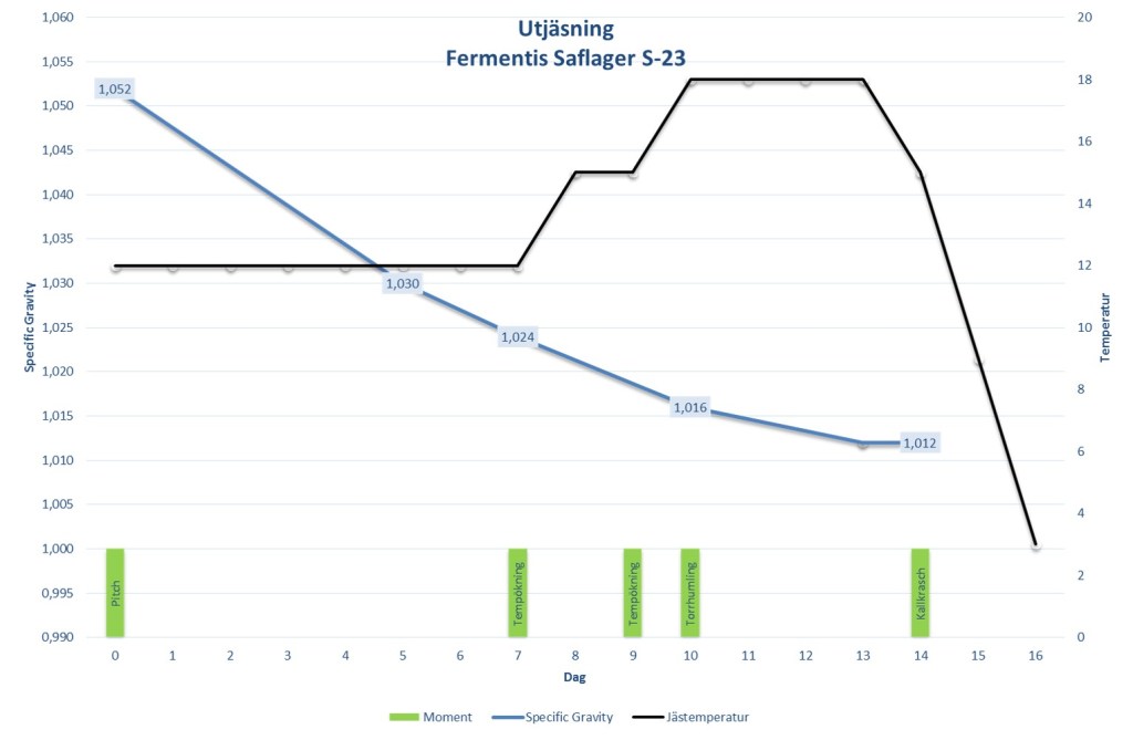Jäsproceduren för min senaste lager är i princip avslutad nu. Återstår gör endast en tids kallkrasch. En sammanställning av processen visualiseras i diagrammet härunder.