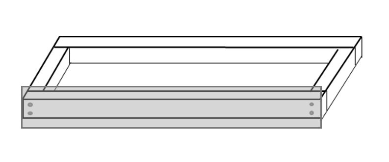 Själva ”innerramen” byggs av 45×95-reglar. Frysboxens bredd och djup mäts och reglar kapas i samma längd, kom ihåg att ta hänsyn till regelns egenbredd (45 mm) och räkna bort denna på endera hållet. I bilden ovan har justeringen gjorts på kortsidan, där regeln är 90 mm kortare än vad frysboxen är djup. Sammanfoga ramen med två skruvar i varje hörn. Skruvarna bör lämpligtvis vara åtminstone 75 mm långa.