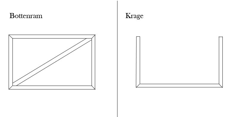 Bottenplatta med 45×70 reglar, byggd i samma mått som frysboxens. Kläs utvändigt med reglar i 45×95 , som får bilda en kant runt om. Till ”mittkragen” används 45×70-reglar . Denna läggs sedan på stöttor av 45×45 som är infästa i bottenplattan.