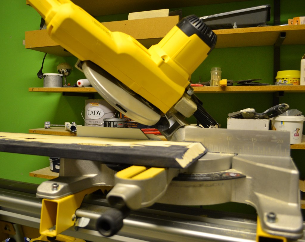 En bit av reglarnas hörn kommer troligen att behöva fasas bort för att locket ska komma på plats och sluta tätt. Hur mycket beror locket, vänd locket upp och ner och mät avståndet in till den kant som går ner runtom, d v s innerlocket. Måttet bör vara ungefär detsamma som tjockleken på frysboxens väggar. Så mycket lämnas orört på reglarna, medans överflödet fasas bort. Jag skar bort det med en vass kniv.