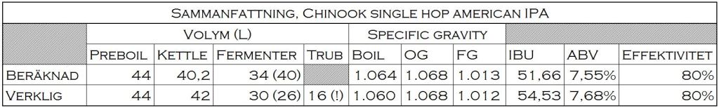Som rubriken och den gåtfulla bilden ovan antyder bryggdes en single hop ale, av amerikansk IPA-typ, med enbart Chinook-humle. Resultatet syns nedan.