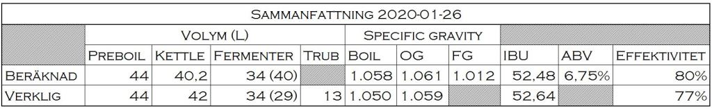 Vid en närmare granskning kanske vän av ordning kanske ställer sig frågande till siffrorna ovan. De ser helt normala ut vid en första anblick. Bakom dem döljer det sig dock en del konstigheter, där en del i förklaring står att finna under ”Fermenter”-kolumnen och siffrorna inom parentes. En annan är addering av jäsbart under kok, i mitt fall strösocker.